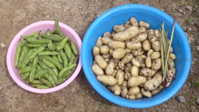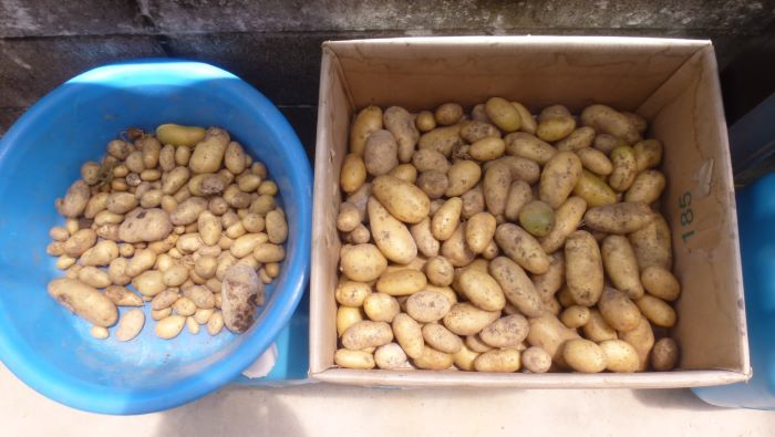 ジャガイモは数個大きいのもあるが、ほとんどが小さい。
