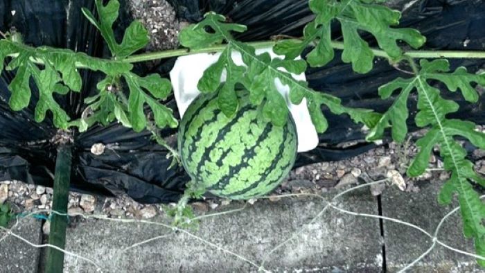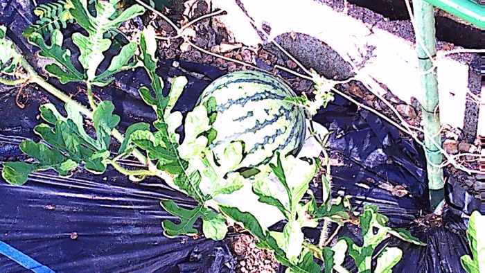 スイカの2個のうち1個にキズがついている。虫害のせいか。