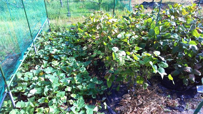 サツマイモ(安納芋)の葉が枯れ始めているが、例年10月にしゅうかくしているので今年は収穫できるのか。