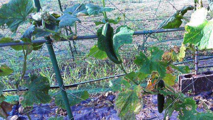 キュウリはまだ少しずつ採れている。