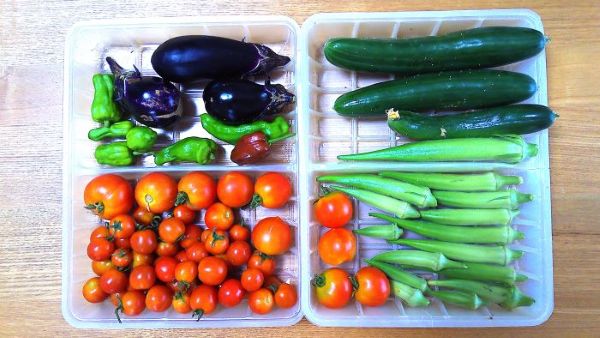 ミニトマトと中玉トマトはまだ青いのもあり、もう少し採れそう。