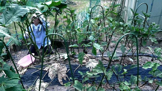 水ナスが終わり、小さいながらナスビが少しずつ採れだした。