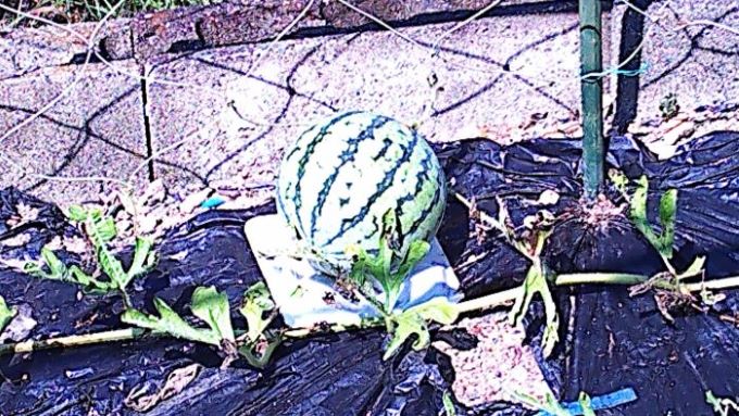 2個目のスイカは順調だが、3個目は黒く反転ができ近くに大きなアリがいた。廃棄処分にする。