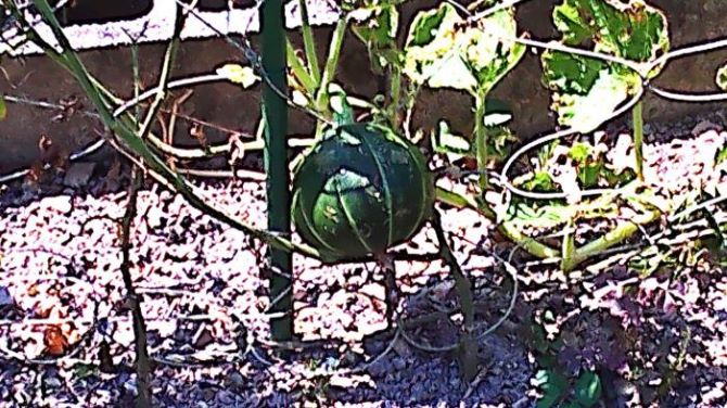 最後の栗カボチャにはっきりと縞が出て成長を続けている。
