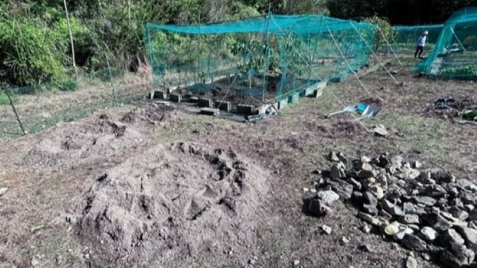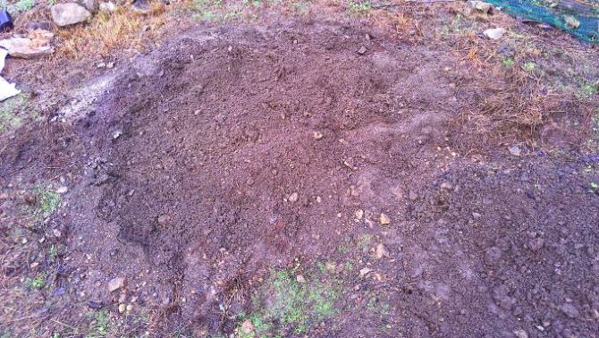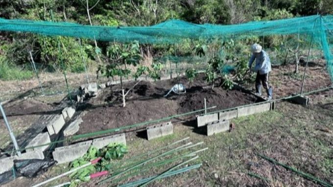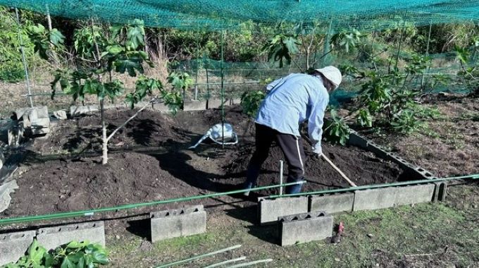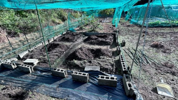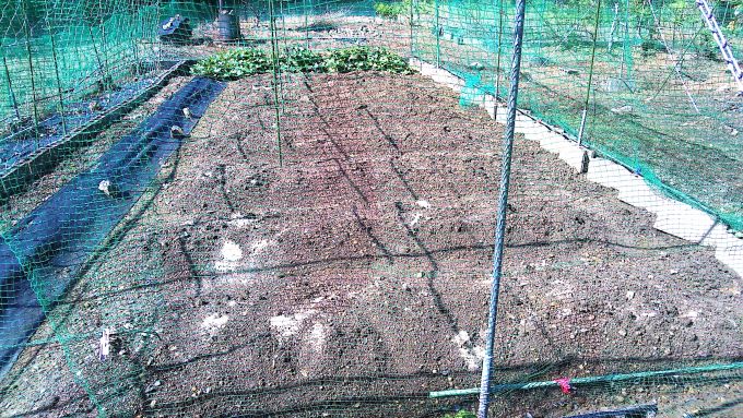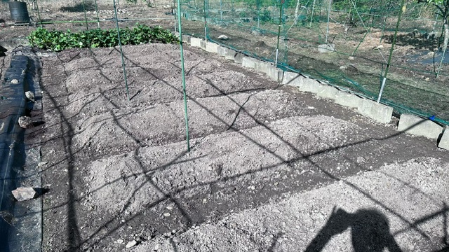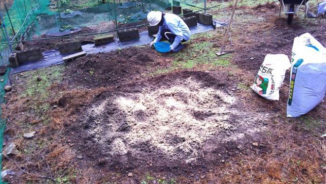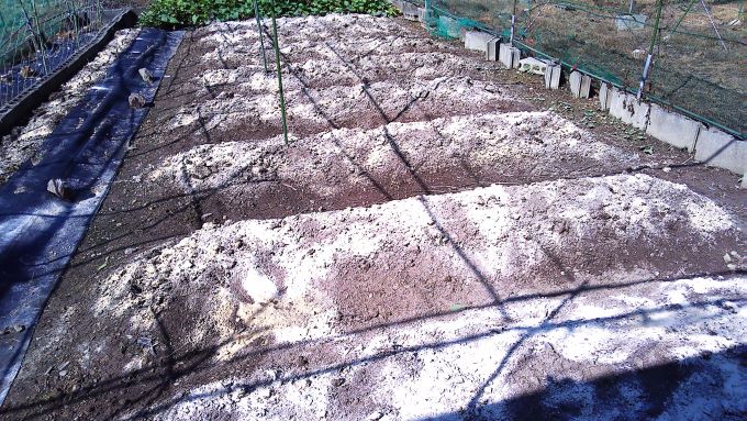 冬野菜用の畝に苦土石灰を例年よりも多めに入れた。