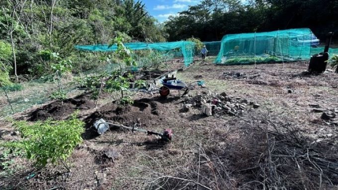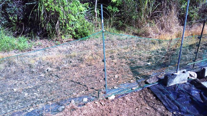 電気柵の支柱が折れていたので余っていた鉄菅と取り換えた。
