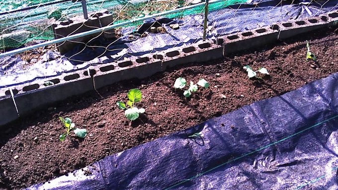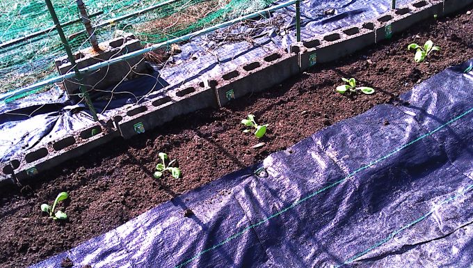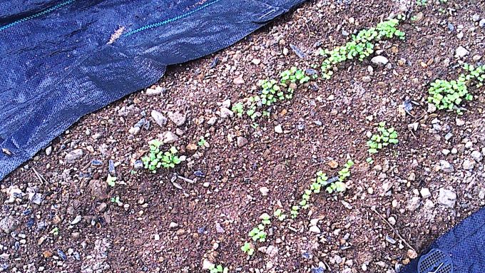 これも後蒔きしたスティックブロッコリーの芽が出ている。