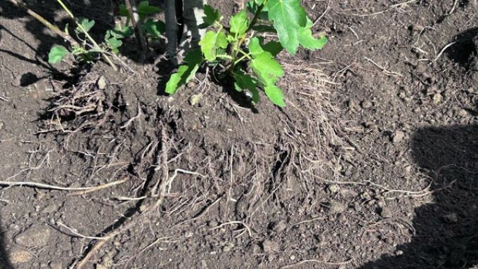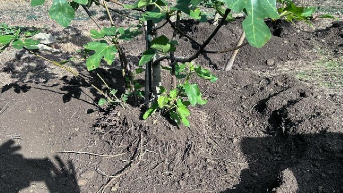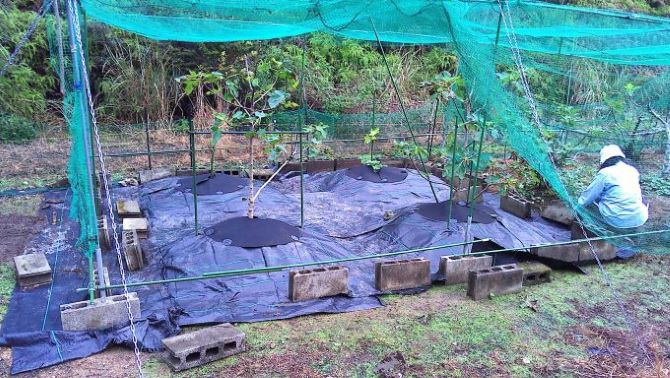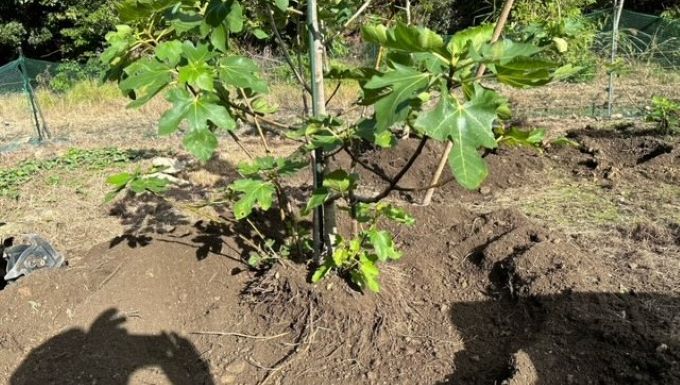 植えかえたイチジク四本の周りにはこれからの除草作業の手間ょ省くため