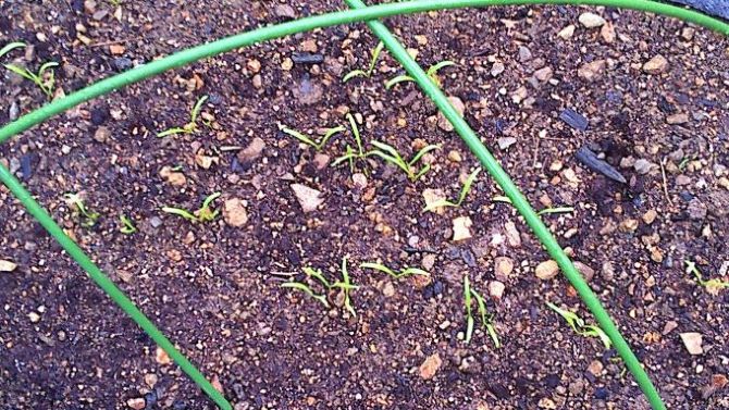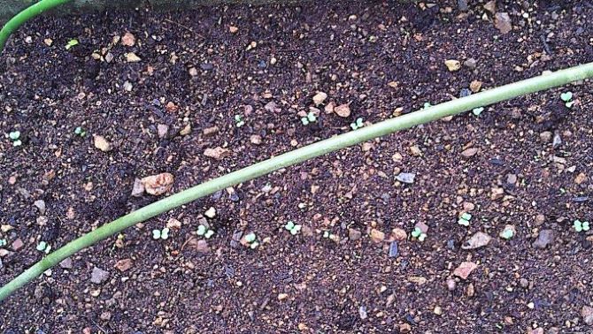 種蒔きをしてから三日で芽が出だしたダイコン、
