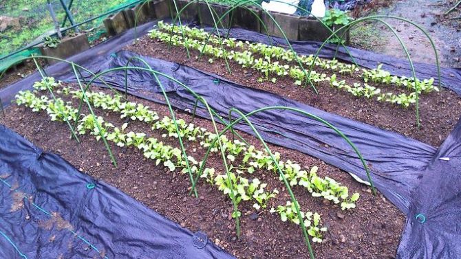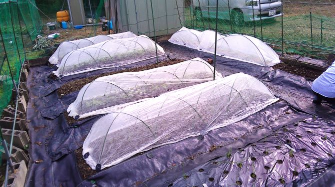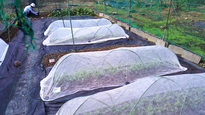 防虫、防寒対策でダイコン、カブ、ホウレンソウ、キャベツ、ハクサイ、ブロッコリーに