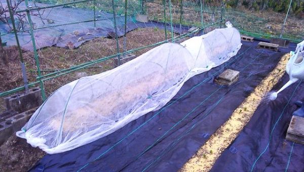 外し、やっと目が出てきたスナックエンドウにカバーをした。