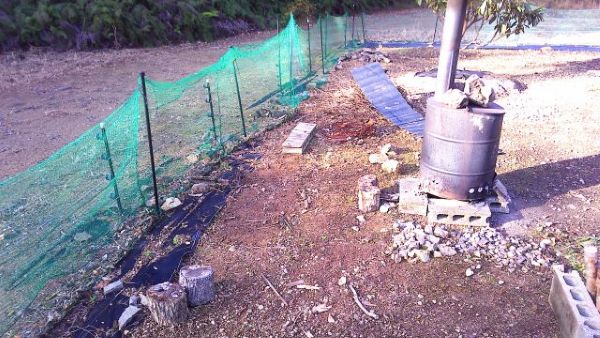 防草シート張りの次はビワとウメの周りを予定しているので、その周辺を灯油