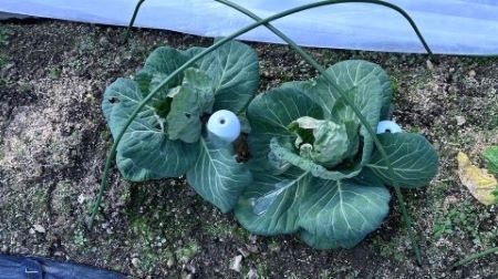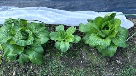 東側畑の状況。キャベツ1個とハクサイ2個が玉になりだした。