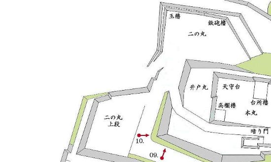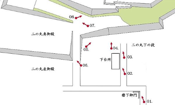 二の丸 櫓下御門から本丸下帯曲輪周辺