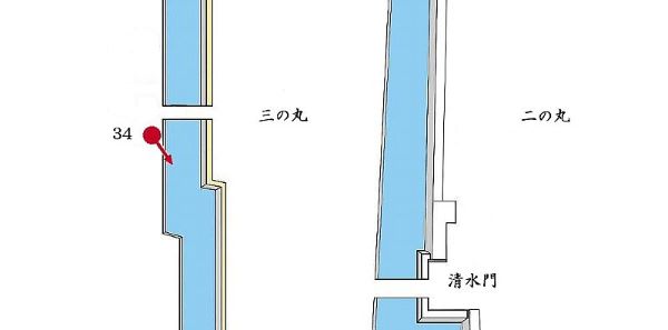 34. 三の丸 西面石垣と外堀