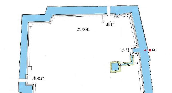 50. 二の丸 東面石垣と水門跡