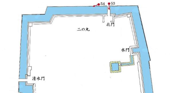 53. 二の丸 北面石垣と北門跡