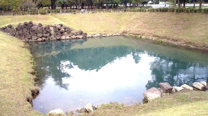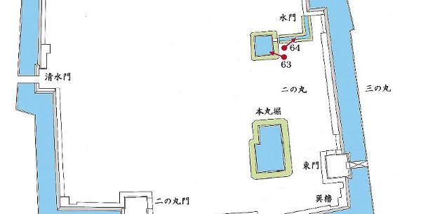 64. 発掘復元中の二の丸水路跡