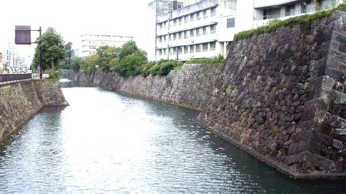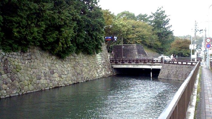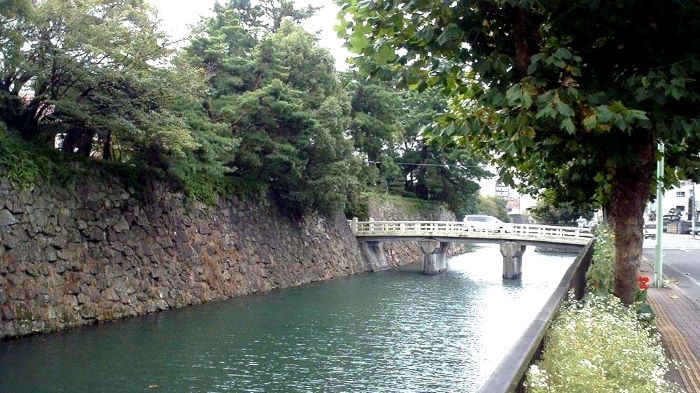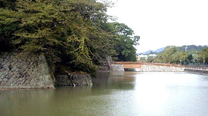 14. 三の丸 南面石垣と外堀 (虎口と橋は後世のもの)