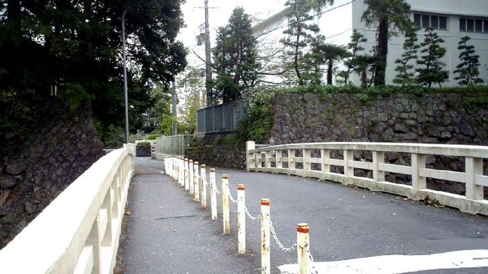 06. 三の丸 南面石垣 この土橋より手前西に50mのところに四足門があった