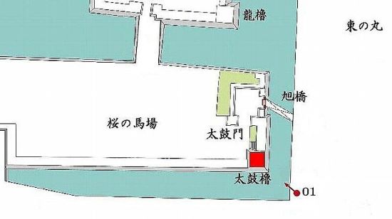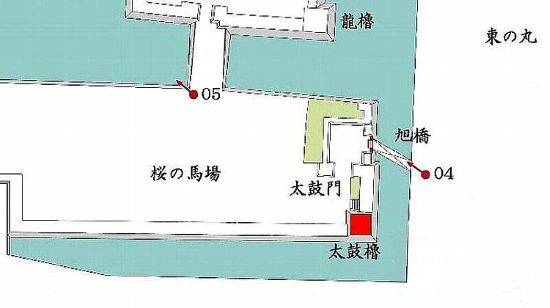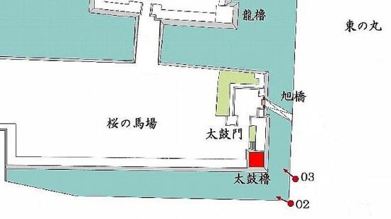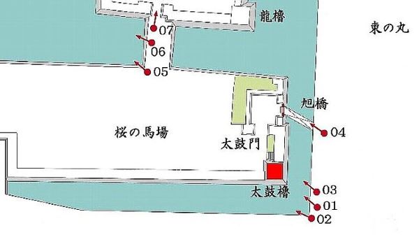 桜の馬場太鼓櫓から三の丸桜門周辺