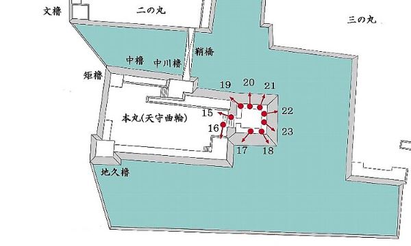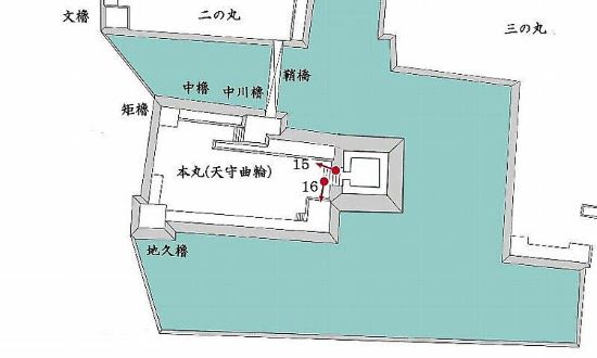 19. 本丸 鞘橋・二の丸文櫓台(天守台から)