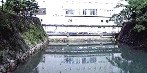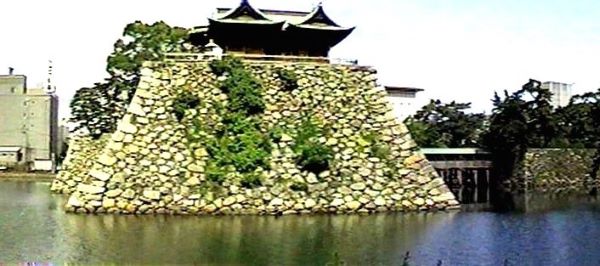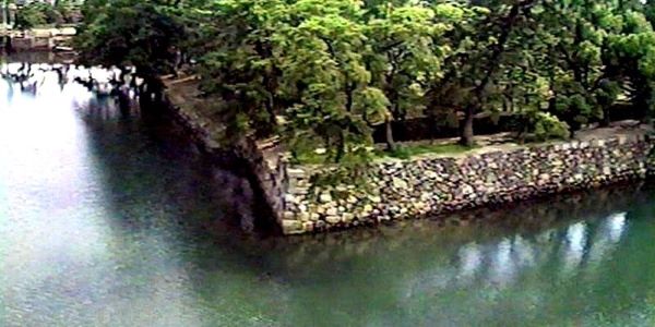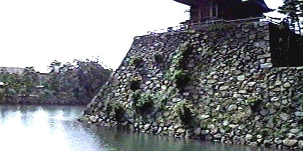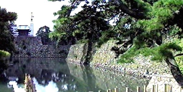 13. 鞘橋からの本丸西北角矩櫓台・中櫓台と二の丸西南角の文櫓台