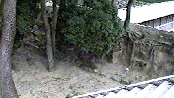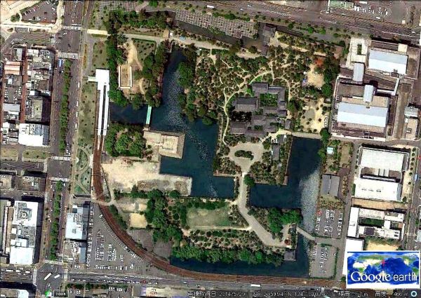 天守台改修工事のため本丸南の堀が埋まっている 2014/5