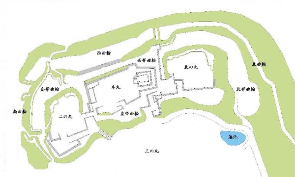 本丸下西曲輪から北の丸下北帯曲輪周辺