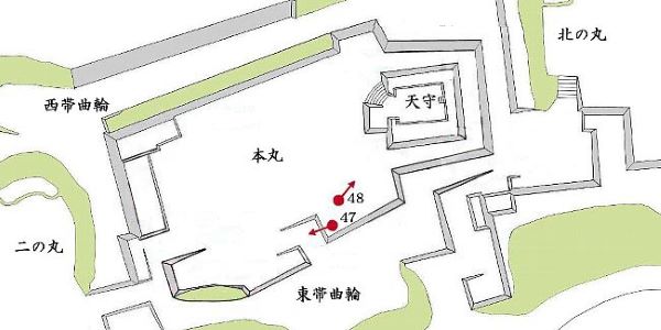 48. 本丸東虎口上からの天守台