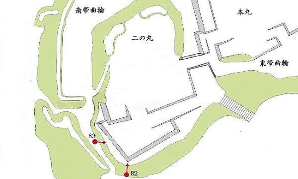 84. 南帯曲輪からの二の丸南面石垣