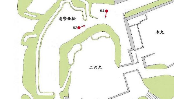 93. 本丸西南角隅櫓台と二の丸西北角土塁