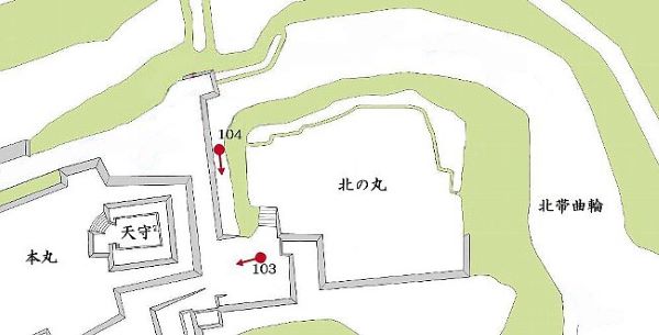 103. 北の丸からの本丸北面石垣と天守台・東帯曲輪
