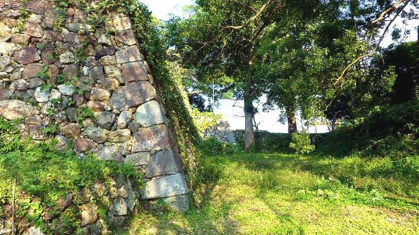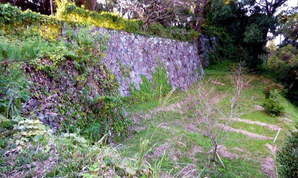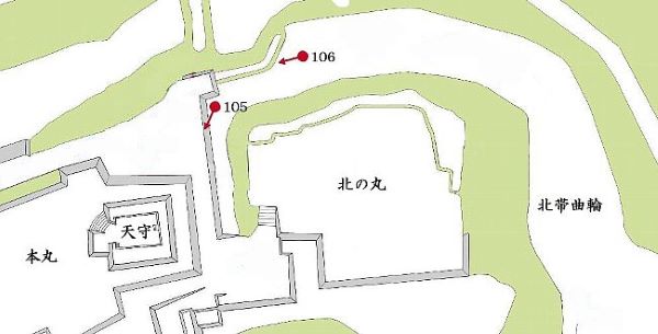 106. 北の丸南面空堀西端と西帯曲輪北端の石垣