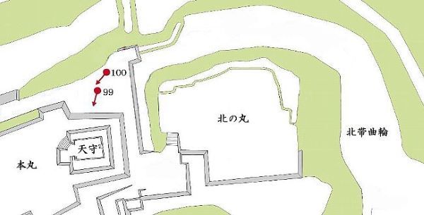 99. 西帯曲輪からの本丸西面石垣