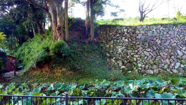 21-1. 三の丸二の門虎口南の曲輪石垣と内堀