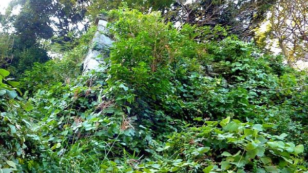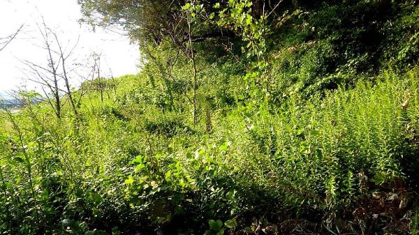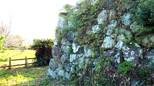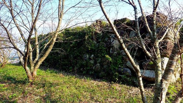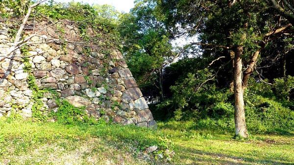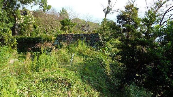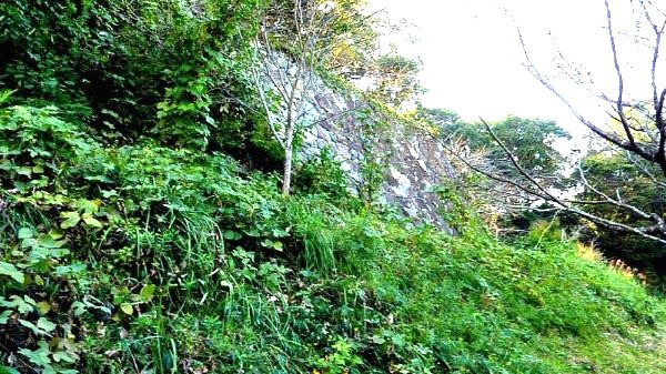 122. 西曲輪からの西帯曲輪西面石垣 この時期石垣は雑草に覆われている