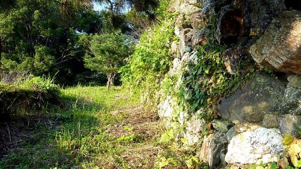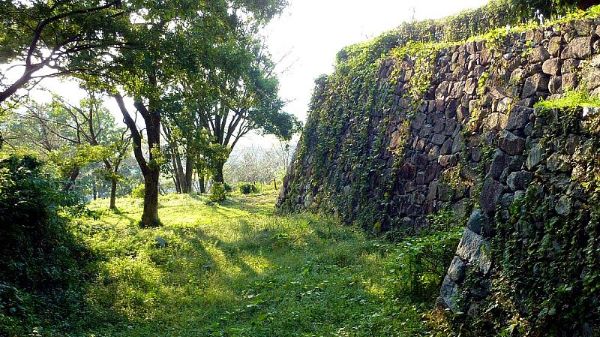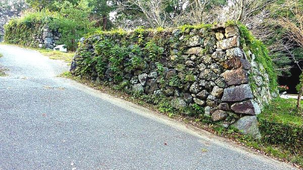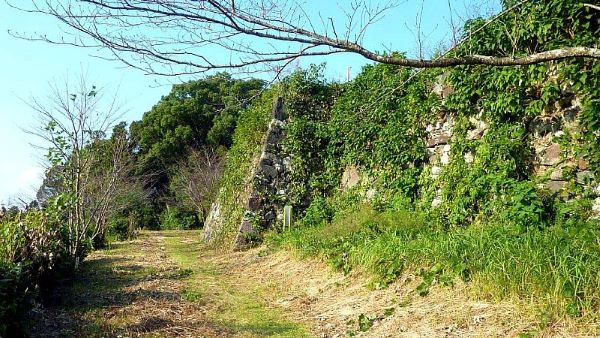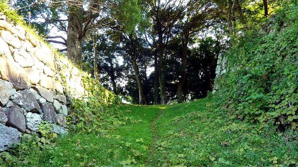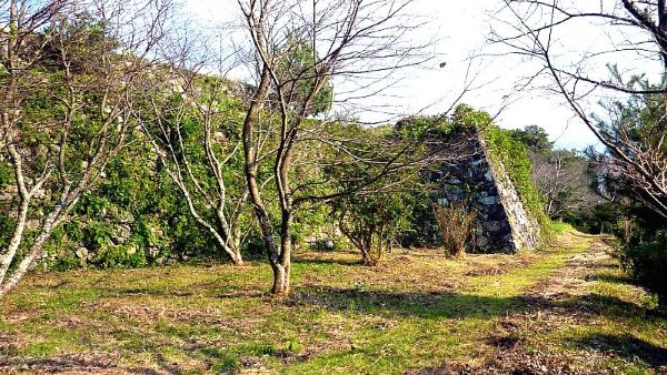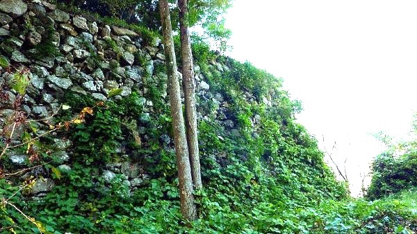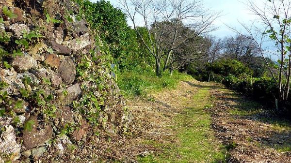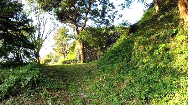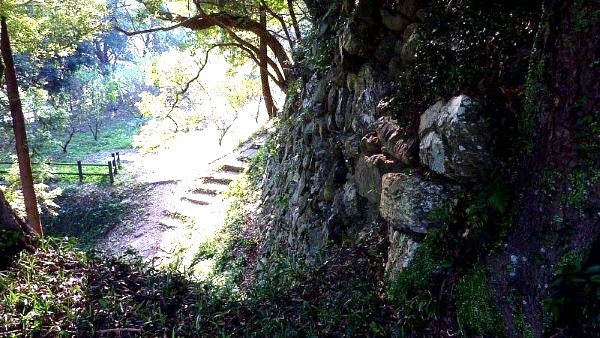 89. 搦手口より南帯曲輪への道からの二の丸南面石垣