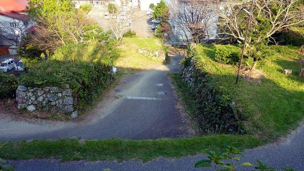 60. 本丸南虎口上からの二の丸と土橋