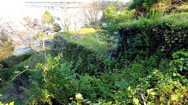 96. 本丸二の丸間の空掘と本丸西南角隅櫓台石垣