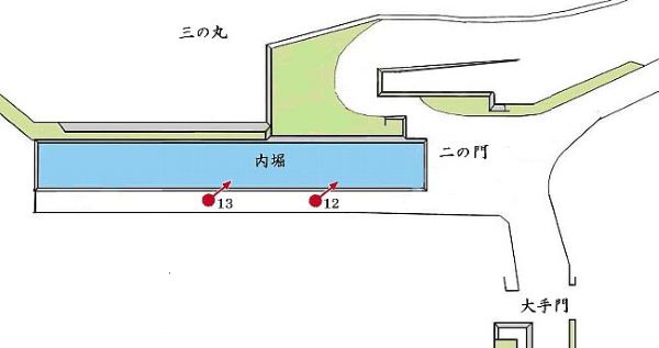 12. 三の丸二の門前内堀と石垣