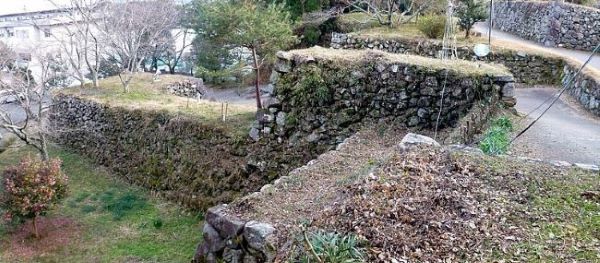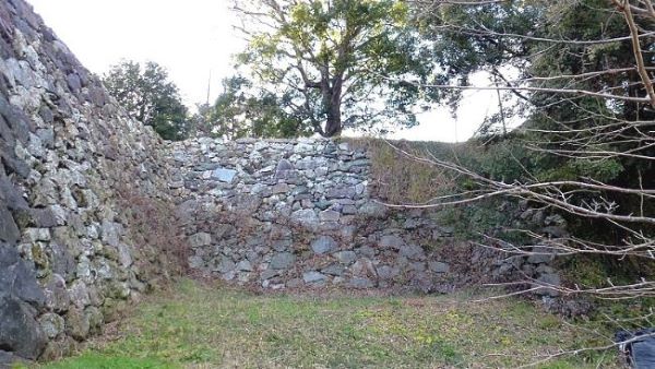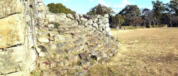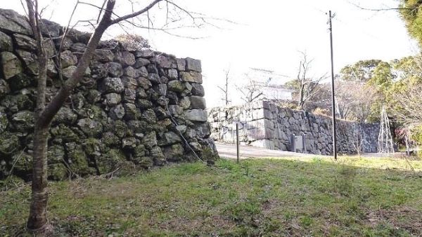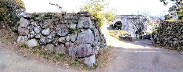 33. 二の丸東面石垣上からの本丸南虎口.