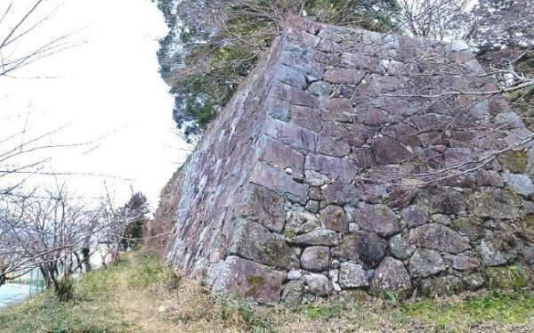 50. 二の丸東虎口下からの本丸東南角石垣.