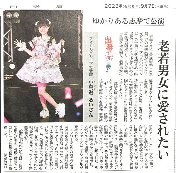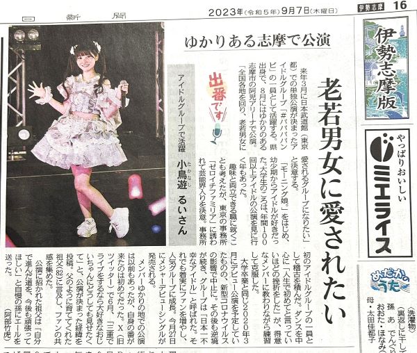 志摩市出身のアイドルババババンビの#小鳥遊るいさんを、先日のニュースMCTVでご紹介