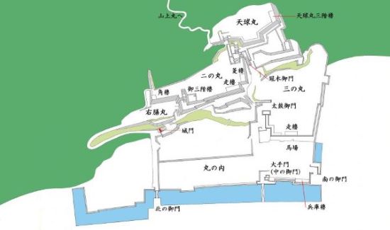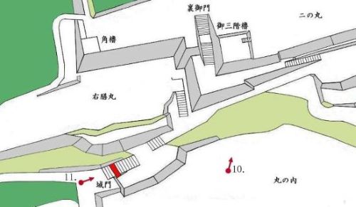 06. 冠木御門跡上部より左にニの丸鉄御門へ