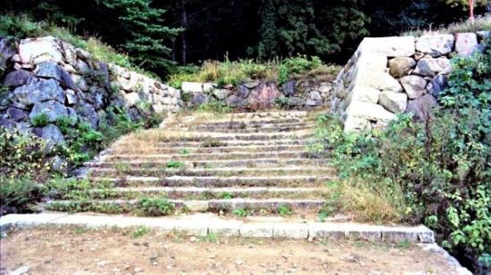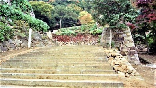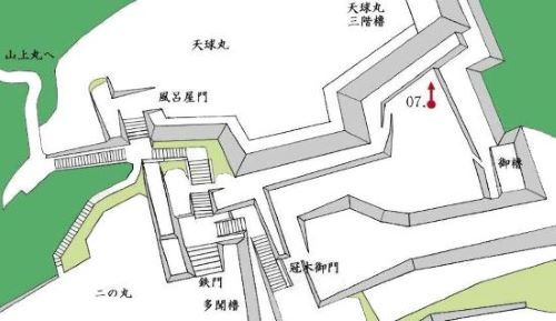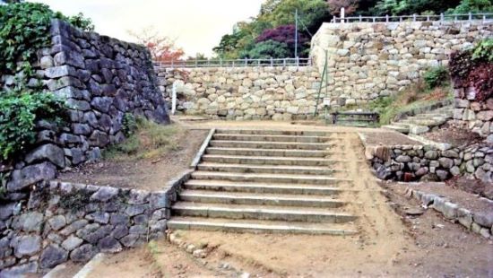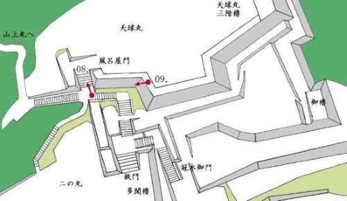 09. 天球丸西北石垣上より山上丸への石段 左前方にニの丸