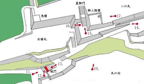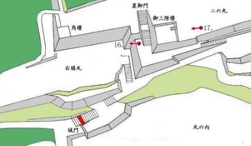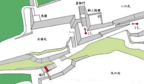 15. 二の丸 裏御門跡と御三階櫓台北面石垣