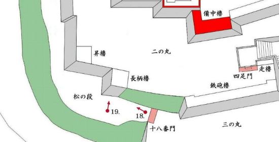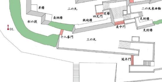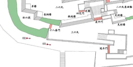 松の段 十八番門跡から二の丸 塩櫓台下周辺