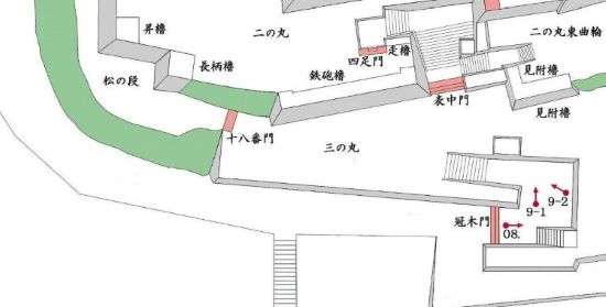 09-1. 三の丸 冠木門内枡形跡・二の丸見附櫓台
