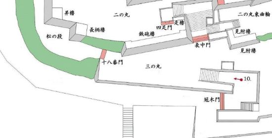 10. 三の丸 冠木門内枡形跡